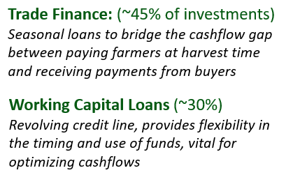 • Trade finance and working capital to support seasonal operations